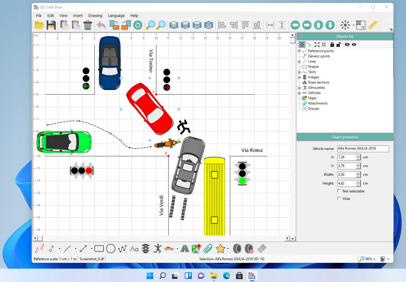The new graphic interface has given 2DCD soft rounded corners and softer contour lines, without however affecting any of the software's potential, from advanced CAD functions to the management of the attachments, from integration with Google MapsĀ® to the endless gallery of predefined cars, signals and objects.